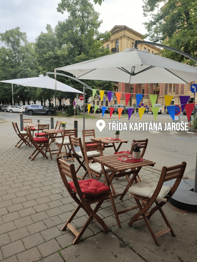 Není to už úplně centrum, ale pořád je to v docházkové vzdálenosti 10 minut (však jste v Brně, že jo). Celá Třída kapitána Jaroše alias Jaroška je výborné místo, takový uliční park (protože se středovou částí táhne alej s cestou pro pěší). Je pravda, že laviček by tu mohlo být klidně víc, ale když si sednete na některou ze zahrádek místních podniků (Anoda, Yacht café, Pelíšek, Tři ocásci, Milady kaffee), určitě neprohloupíte a dovolenková atmosféra se rozhodně dostaví.