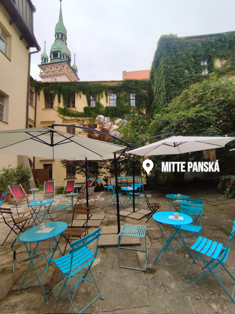 Kavárna Mitte Panská, na tu se odkazuju často, protože tahle zahrádka je skutečný poklad a hidden gem, o kterém ví jen místní a zasvěcení (jako vy). Z Panské ulice při vstupu do kavárny neuvidíte ani náznakem, co se skrývá za dveřmi na zahrádku ve vnitrobloku. Jakmile však těmi dveřmi jednou projdete, budete vědět, že sem se rozhodně chcete vracet.