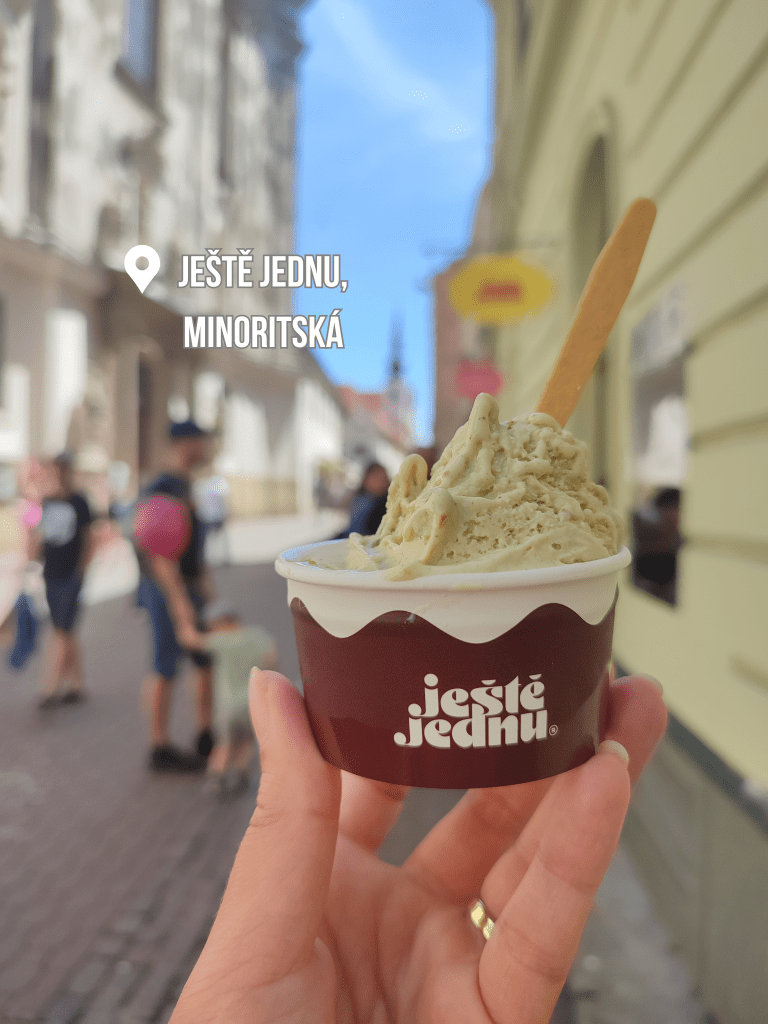 Vyčekat si frontu na zmrzlinu Ještě jednu. Tato legendární brněnská zmrzlina přitahuje davy (a zcela oprávněně). Pokud tady frontu nevidíte, dost možná není otevřeno! 🙂 Máte-li chuť na zmrzlinu a netrváte nutně na porci v kornoutku, můžete se vyhnout frontám tím, že zamíříte k zmrzlinovému automatu Ještě jednu naproti Dětské nemocnici na ulici Černopolní.