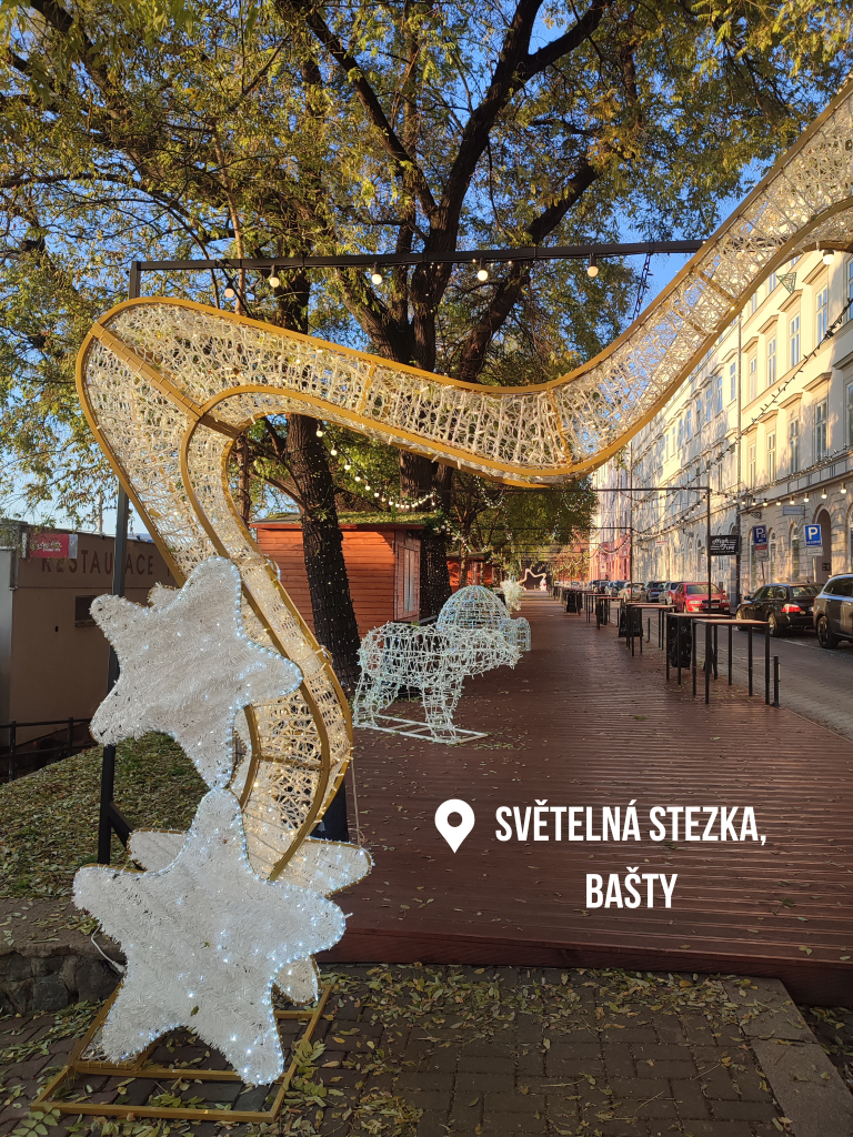 Světelná stezka na Baštách září i během dne. Dětem se budou líbit místní zvířátka, případně jim to pojistěte nějakou dobrotou ze stánku, například horkou čokoládou s marsmellows.