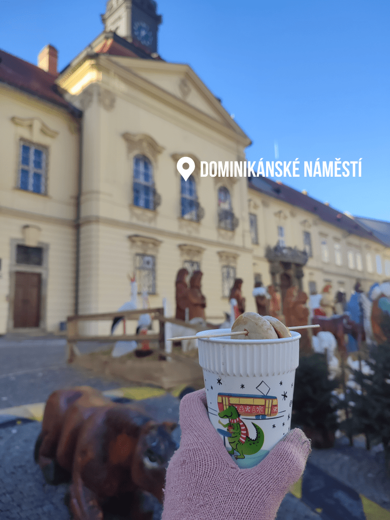 Dominikánské náměstí zdobí Halouzkův betlém, jeden z největších v ČR. Obdivovat jej můžete s kelímkem (alko i nealko) Ježíškova punče, který tu dávají s tradičními rumovými perníčky.