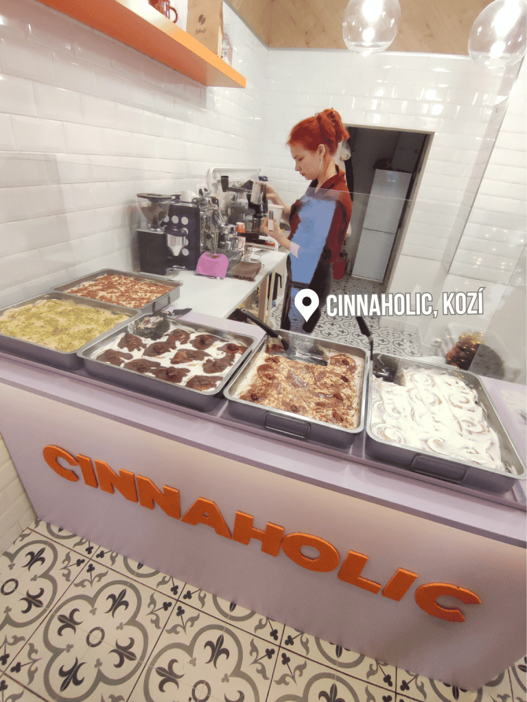 Cinnaholic otevřela své dveře až v prosinci 2024, hned se však stala fenoménem a dveře se tu netrhnou. Pokud si chcete zachovat možnost výběru z různých příchutí známých skořicových rolek, musíte přijít do hodiny po otevíračce. Odpoledne už většinou není z čeho brát. Jen počítejte s tím, že to není úplně levná záležitost, jedna rolka vás i s krabičkou (protože konzumovat na místě to není jak) vyjde na 120 Kč (5 €). S sebou můžete přibrat i kávičku.