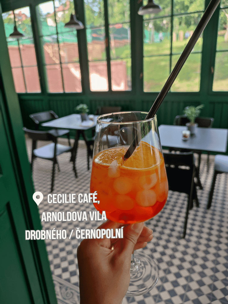 Především kvůli atmosféře doporučuju navštívit Cecílie café ve zrekonstruované Arnoldově vile, která uzavřela tzv. Trojvilí v bloku zahrad vedle vily Löw-Beer a vily Tugendhat. Kávu či jiný nápoj z kavárny Cecílie café si můžete vzít s sebou do zahrady (kde je i malé retro hřiště), takže si ho můžete vychutnávat v oáze klidu nad rušnou ulicí Drobného. Káva je tu spíše tradičního charakteru, takže vybrané jazýčky možná plně neuspokojí, ale prostor a atmosféra by to mohla vyvážit.