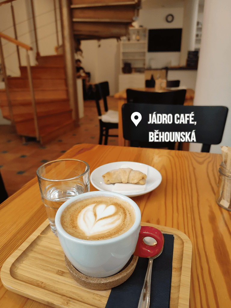 Jádro café otevřelo takřka naproti The Miners. Do centra Brna na Běhounskou ulici zamířilo poté, co předtím několik let působilo v Králově Poli ve výrazně menším prostoru. Nejde tedy na brněnské kavárenské scéně o úplného nováčka. Prostor na Běhounské nabízí několik menších stolků s posezením v přízemí (a takřka ve výloze). Další možnosti jsou v horním patře, kam se dostanete po krásném dominantním schodišti. Dřív tady bývala, tuším, lékárna a málokdo měl ponětí, že se tu ukrývá tak krásné točité schodiště. Možná i s ohledem na něj se objednávky odbavují na baru, aby se obsluze nezatočila hlava.