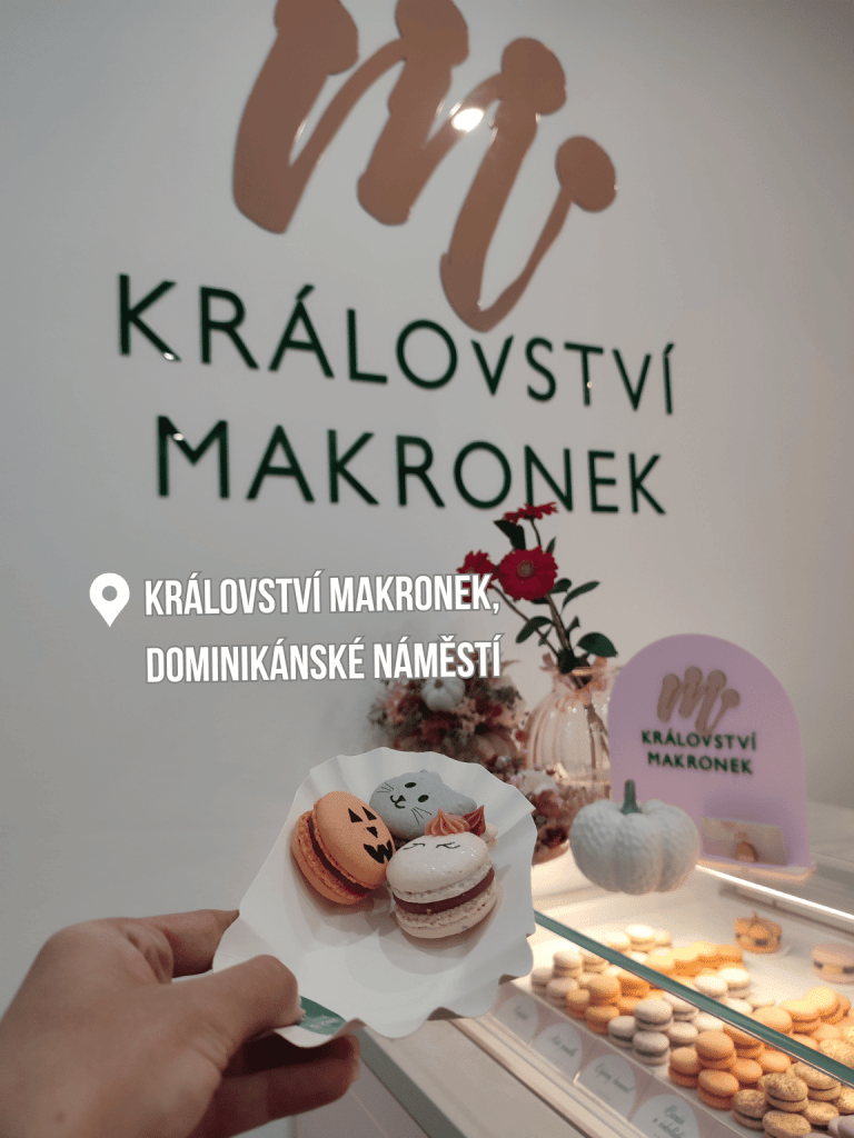 Království makronek otevřelo svou první provozovnu v okrajové Bystrci (v postatě až na Kamechách), což je z centra opravdu dost z ruky. Velmi jsem proto uvítala, že krásné řemeslné makronky si od září 2024 můžeme užívat přímo ve středu města na Dominikánském náměstí. Makronky jsou tu vždy sezónní a vychytané do posledních detailů. Pořídíte tu zvířátkové, valentýnské, halloweenské, vánoční… Zachrání vás tady třeba i nárazově před dětskou narozeninovou oslavou. A kromě toho tu dělají moc dobré kafe.