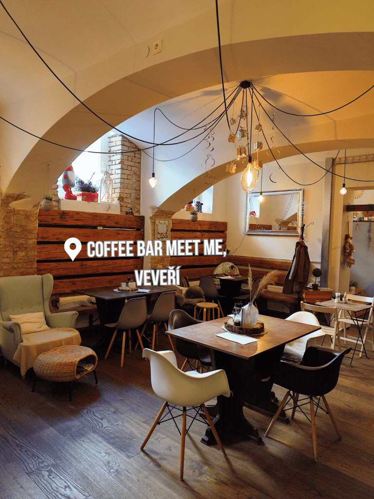 Poklidný prostor na práci a dobrou zašívárnu hledejte v podzemí na Veveří v kavárně Coffee bar Meet me. Tento podnik s řeckým duchem nabízí příjemné posezení – stolků je tu hodně a pro práci vždycky nějaký vodný najdete. Kromě nápojů má kavárna i dobrou nabídku drobného jídla, kdyby vám u práce vyhládlo.