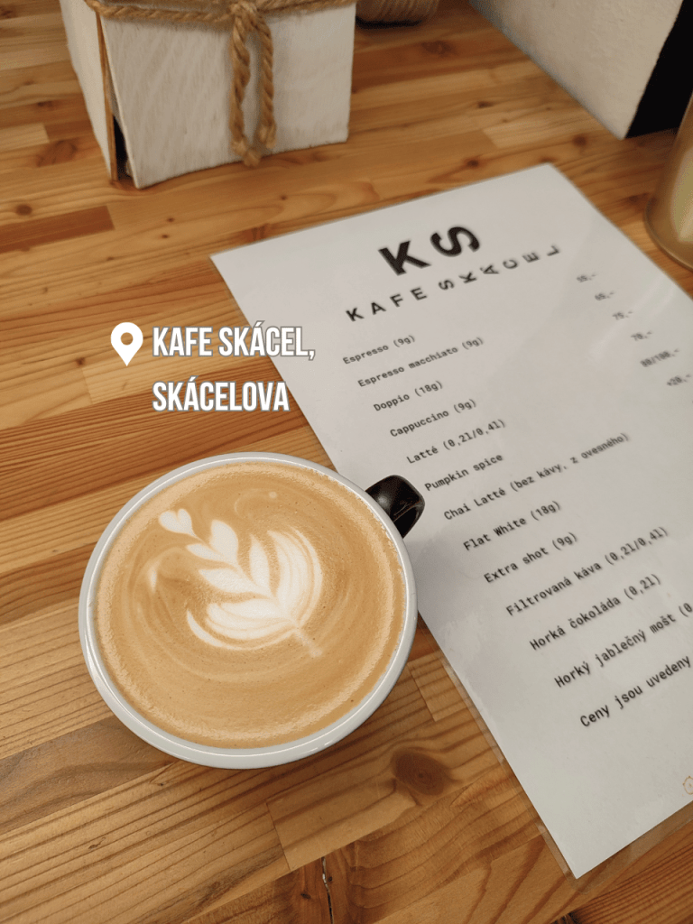 Ještě dál v Králově Poli najdete Kafe Skácel (nečekaně je u zastávky Skácelova). Zdejší prostor je vážně maličký, avšak káva odsud špičková.
