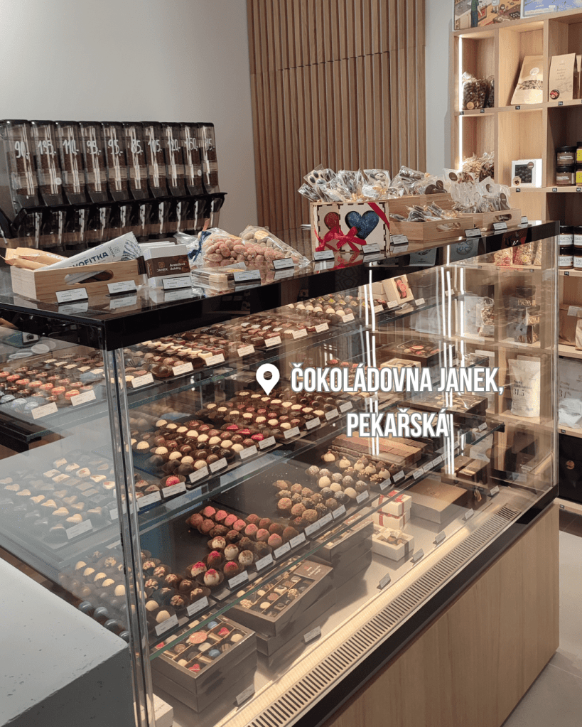 Čokoládou a kávou se naplnil malý obchůdek na Pekařské ulici, kde se na konci října otevřel Coffee & Chocolate spot Čokoládovny Janek. Najdete ho naproti hlavnímu vstupu do nemocnice u sv. Anny. Prodává se tu čokoláda v podobě pralinek, tabulek i v rámci dárkových balíčků. Také jsou tu oříšky, zrnková i mletá káva a další dárkové zboží. Kvalitní kávu z kávovaru vám tu udělají také s sebou.