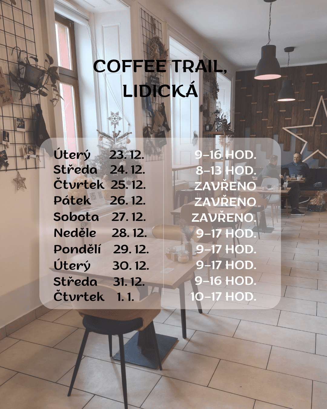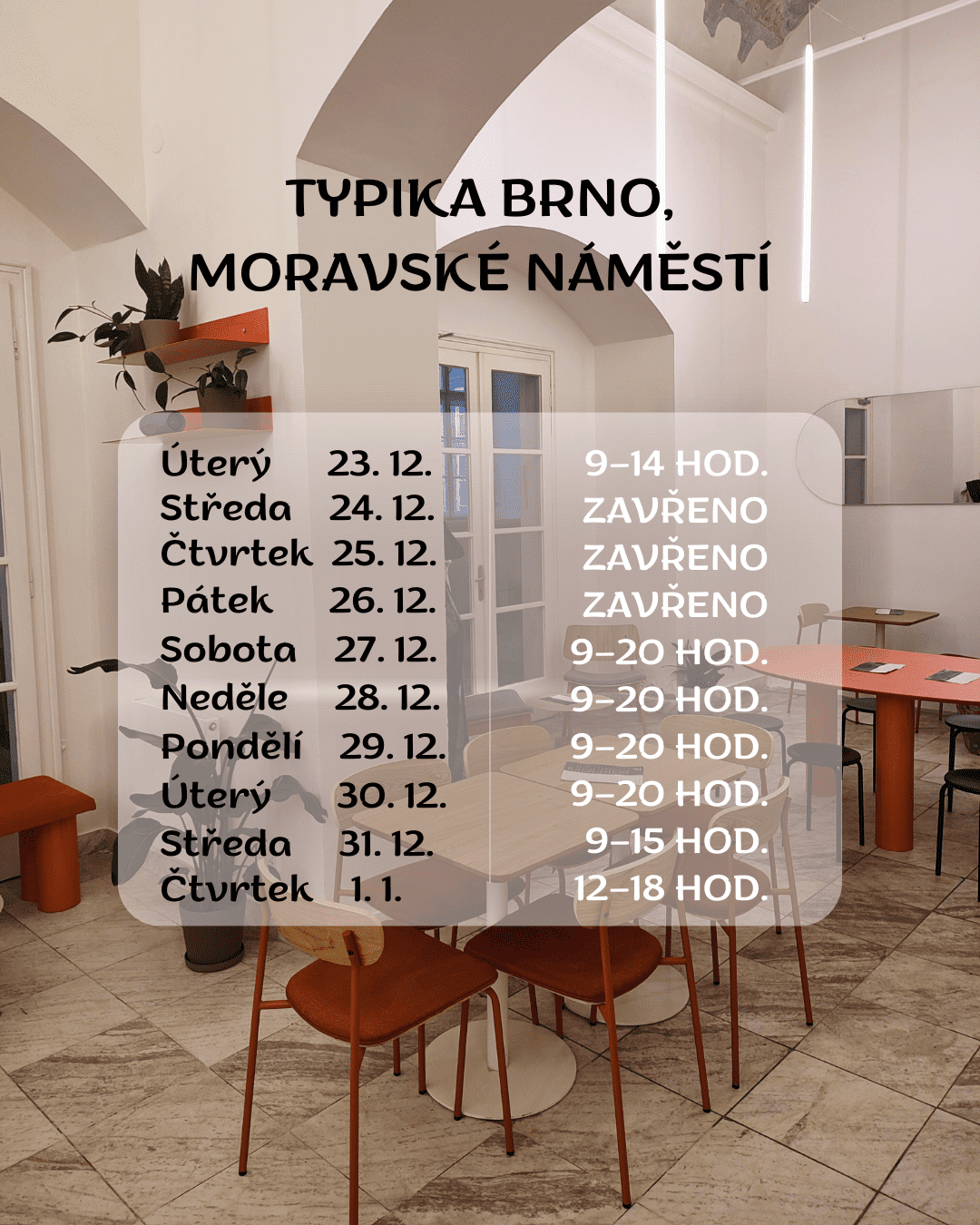 Sváteční otevírací doba kaváren však způsobuje jistou míru nejistotu. Kam se vypravit, aby touha po teplém nápoji nevyzněla do prázdna? Proto opět přináším přehled oblíbených kaváren v Brně, kam se vyplatí jít na kafe od 23. prosince do Nového roku.