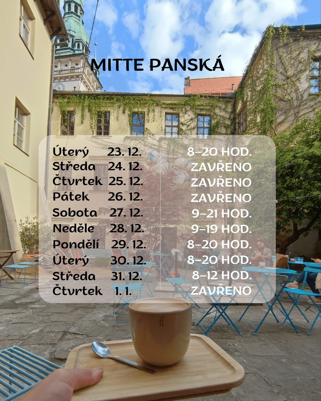 Mimochodem, ti co otevřou na Nový rok, mají ode mě speciální palec nahoru, protože právě tam vždy mé abstinenční příznaky po kvalitní kávě kulminují! 🙂