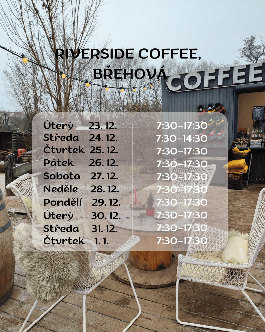 Dávám proto další tipy, kam se vypravit, abyste si vycházku mohli užít i se zaslouženou kávou v období od 23. prosince do Nového roku.