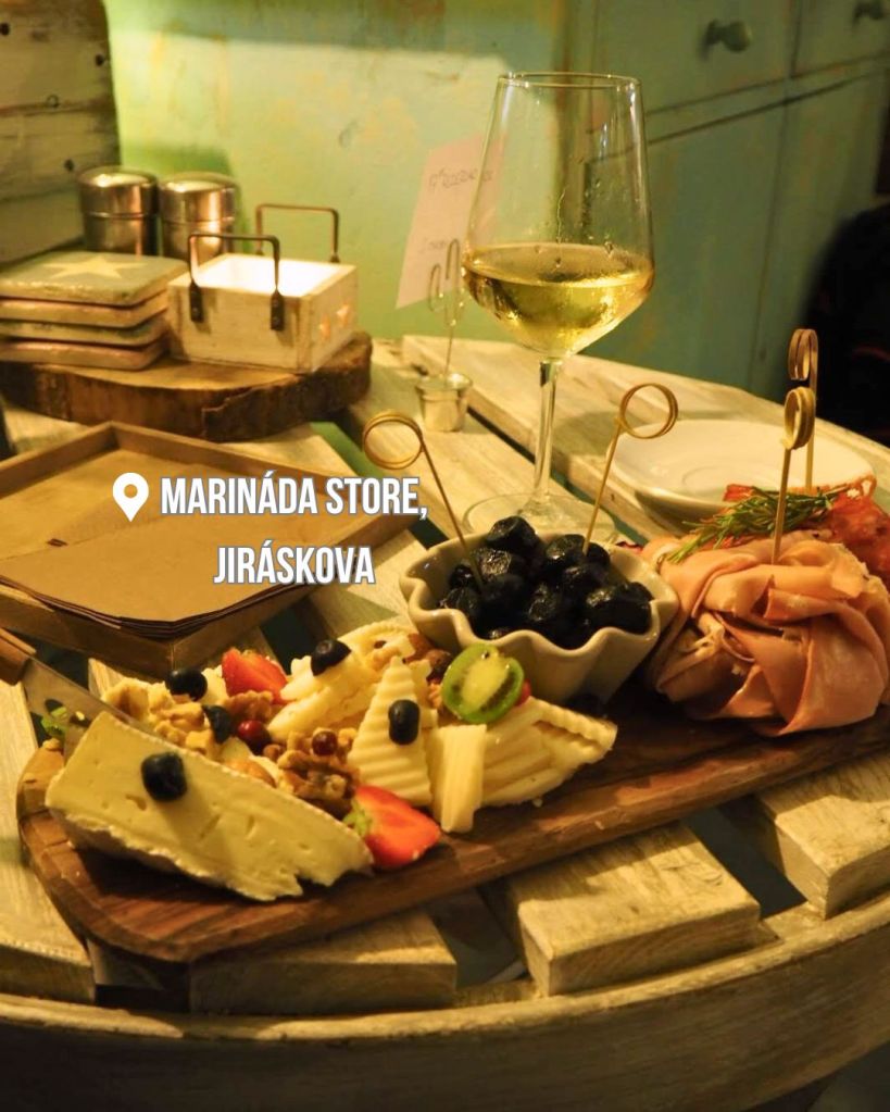 Marináda Brno je ztvárnění tzv. „cosy place“, tedy místečka plného hřejivé atmosféry, kde si k vínu můžete dopřát ty nejvybranější lahůdky (sýry, uzeniny, olivy, oříšky…), které vám přinesou na tom nejhezčím prkénku.