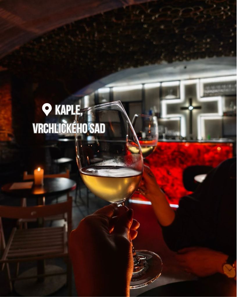 Kaple wine bar je jeden z mých nejoblíbenějších podniků. A to navzdory tomu, že v zásadě nejsem fanoušek naturálních vín, na která se zde specializují. Má to tady dokonalou atmosféru, víno dostanete na míru dle svých chutí (popíšete, co vám chutná, a k tomu správnému vzorku se prodegustujete dle doporučení).